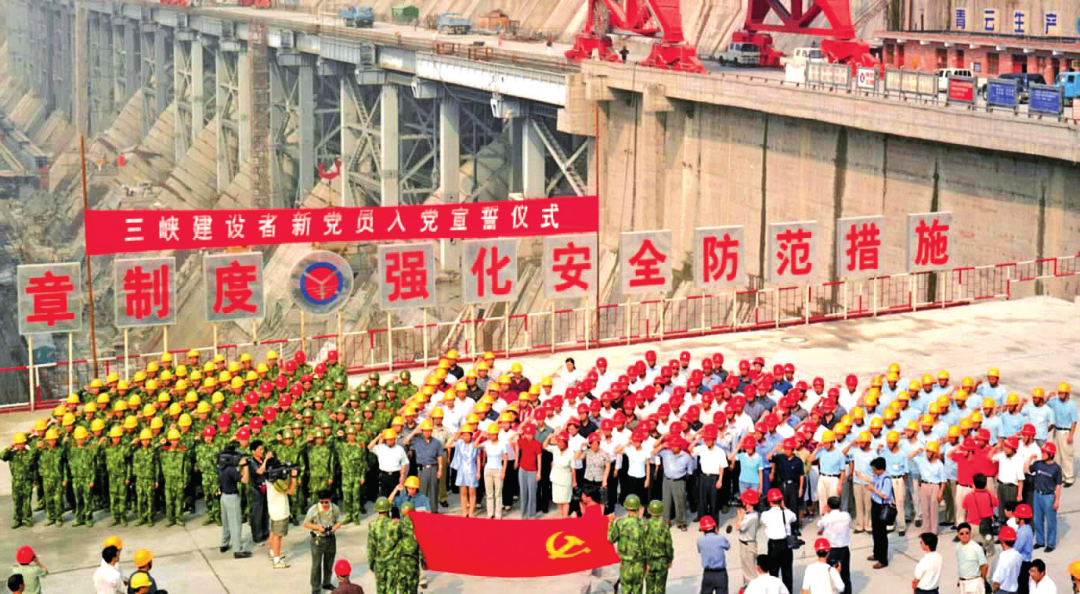 △2001年,奋战在建设一线的工人举行入党宣誓仪式
