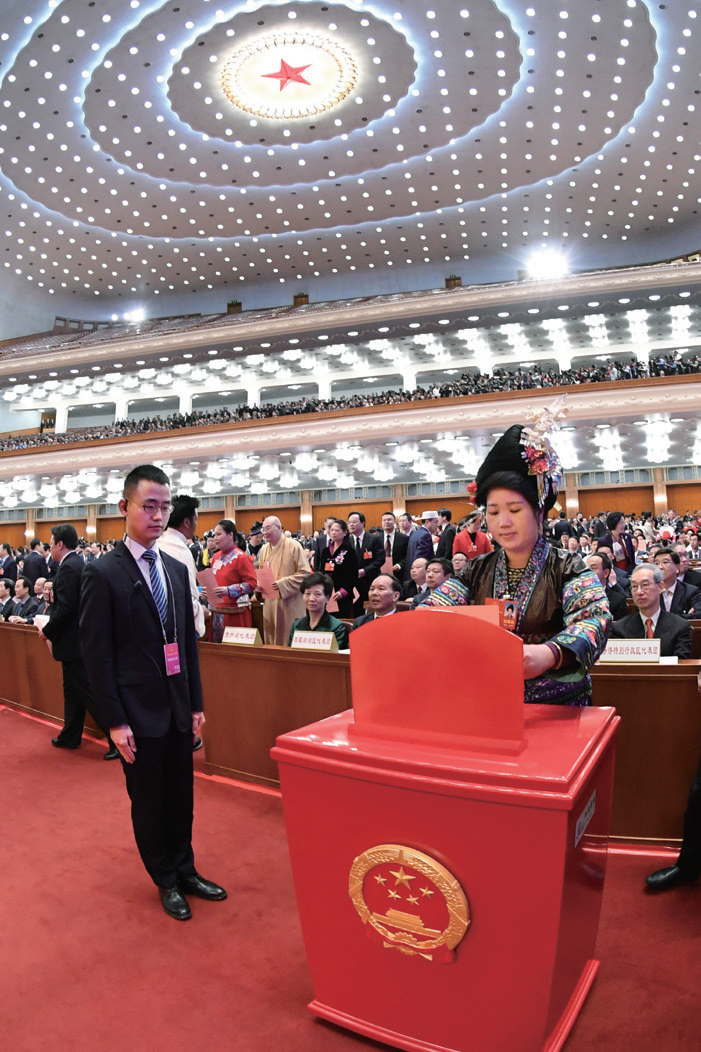 △十三届全国人大一次会议投票表决《中华人民共和国宪法修正案》