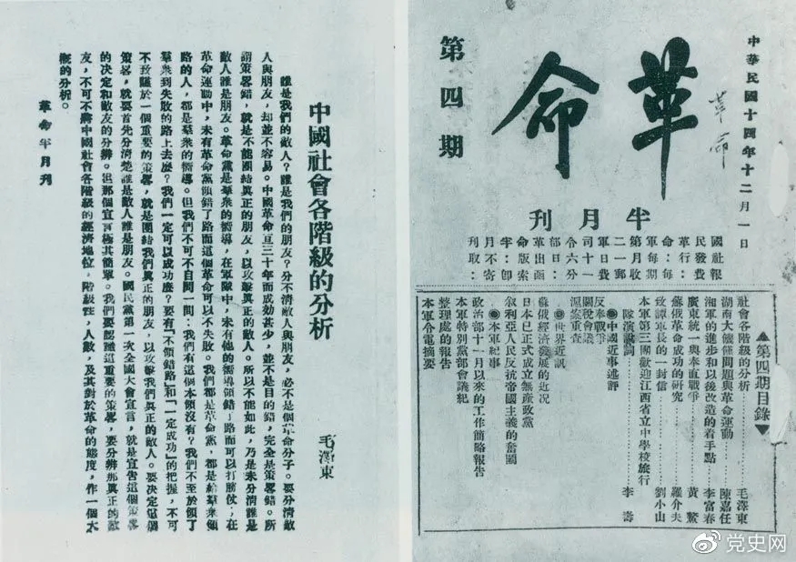 1925年12月1日,毛泽东发表《中国社会各阶级的分析》一文。图为《革命》第四期首次刊载的《中国社会各阶级的分析》。