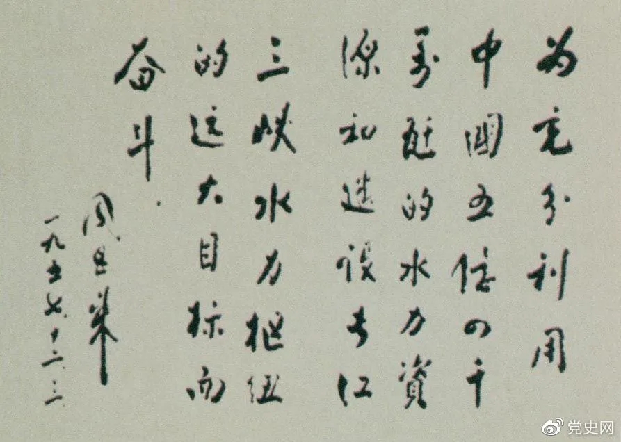 1957年12月3日,周恩来为全国水力发电建设展览会题词。